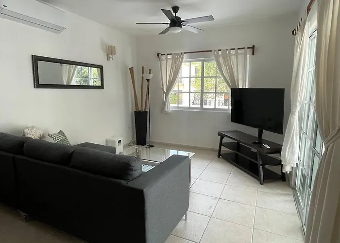 Amplio Departamento En 5Ta Av Appartement van 100 m^2 bevindt zich op 6 minuten te voet van Coco Bongo en heeft uitzicht op de stad. Het 1-slaapkamer appartement ligt op korte loopafstand van Quinta Avenida en biedt een buitenzwembad.